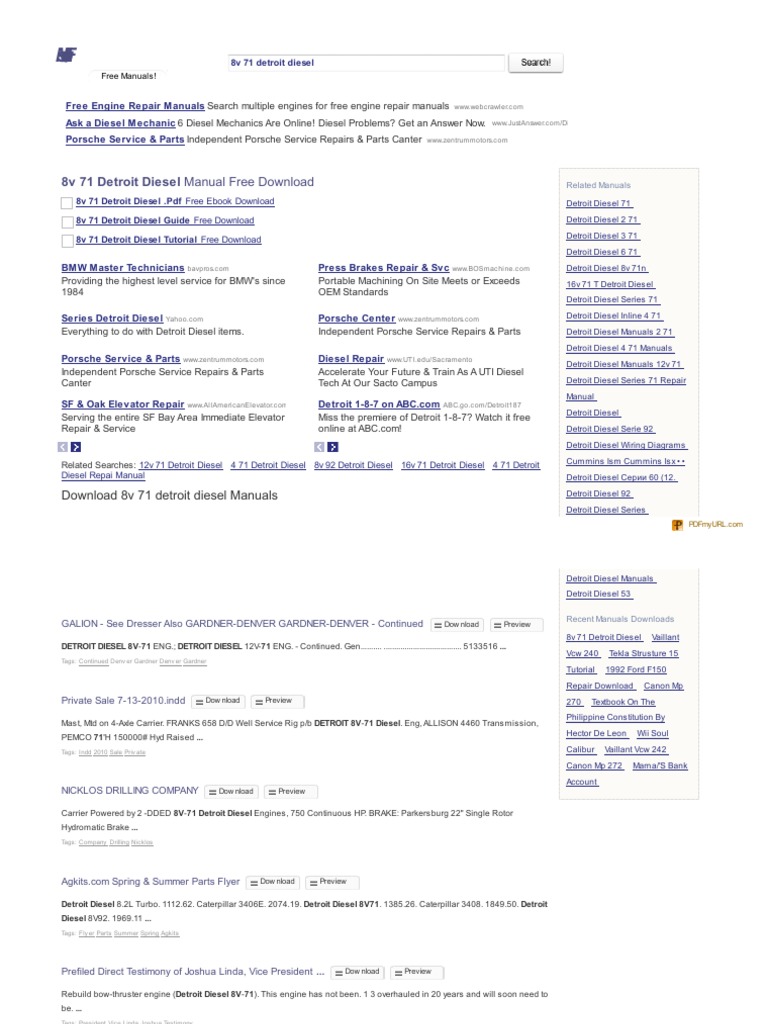Detroit Diesel Engines V 71 Service Manual Auto Repair Manual